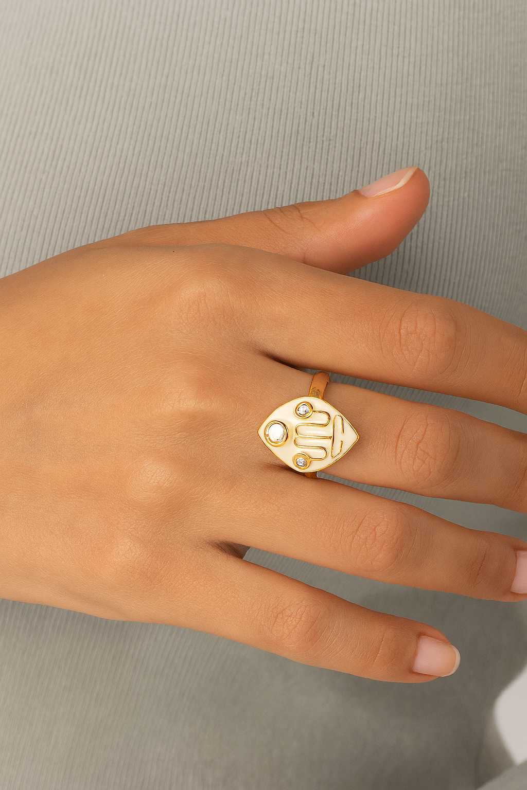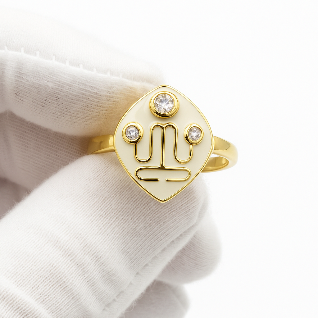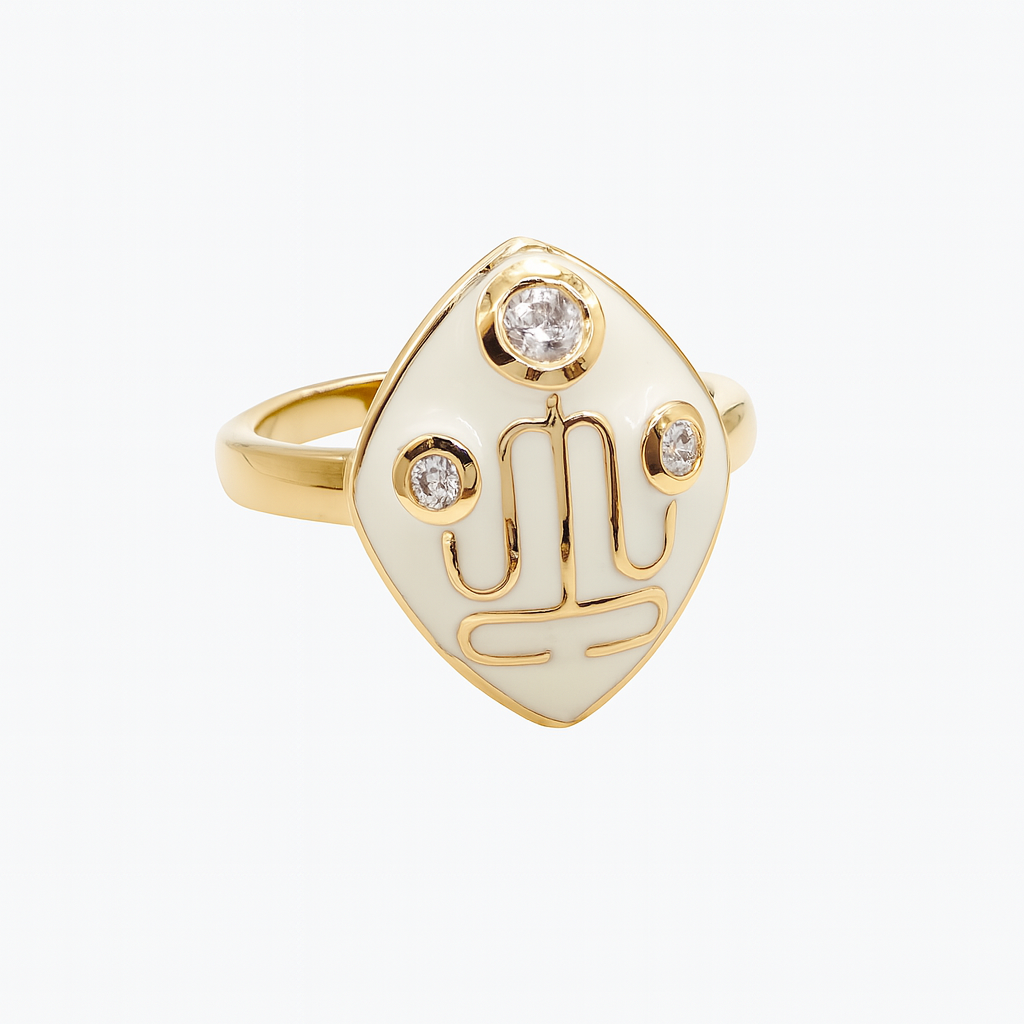 Elevate your everyday style with this beautifully crafted Ivory Enamel Adjustable Ring, designed to bring a touch of elegance to any look. Made with a durable 14k gold-plated finish, this ring features a smooth ivory enamel band topped with brilliant white cubic zirconia stones that sparkle with every movement.