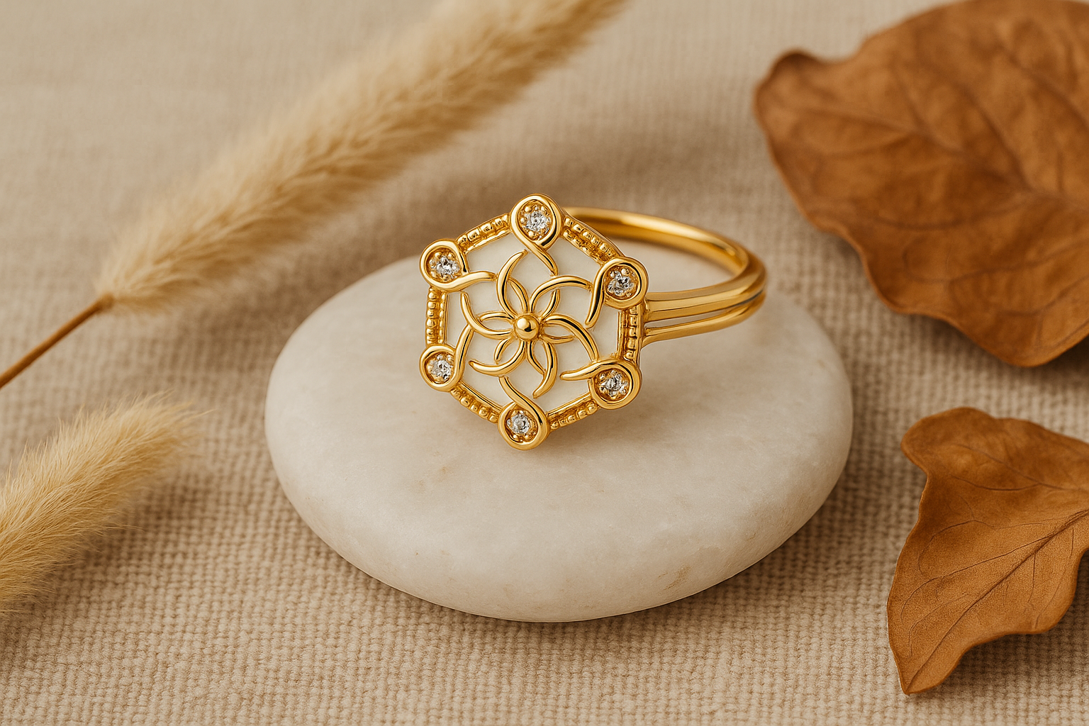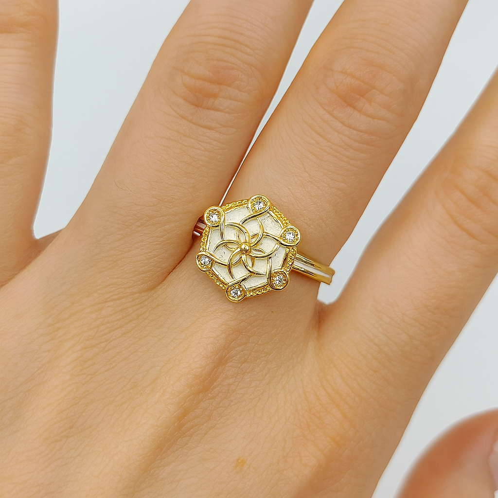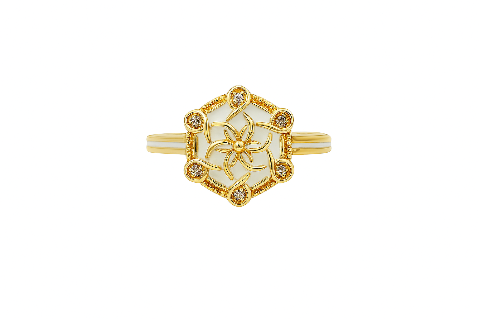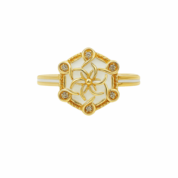 Elevate your everyday style with this elegant Ivory Enamel 14K Gold-Plated Ring, beautifully accented with sparkling white cubic zirconia stones. Designed to blend sophistication with modern charm, this ring is perfect for stacking, gifting, or making a subtle statement on its own.