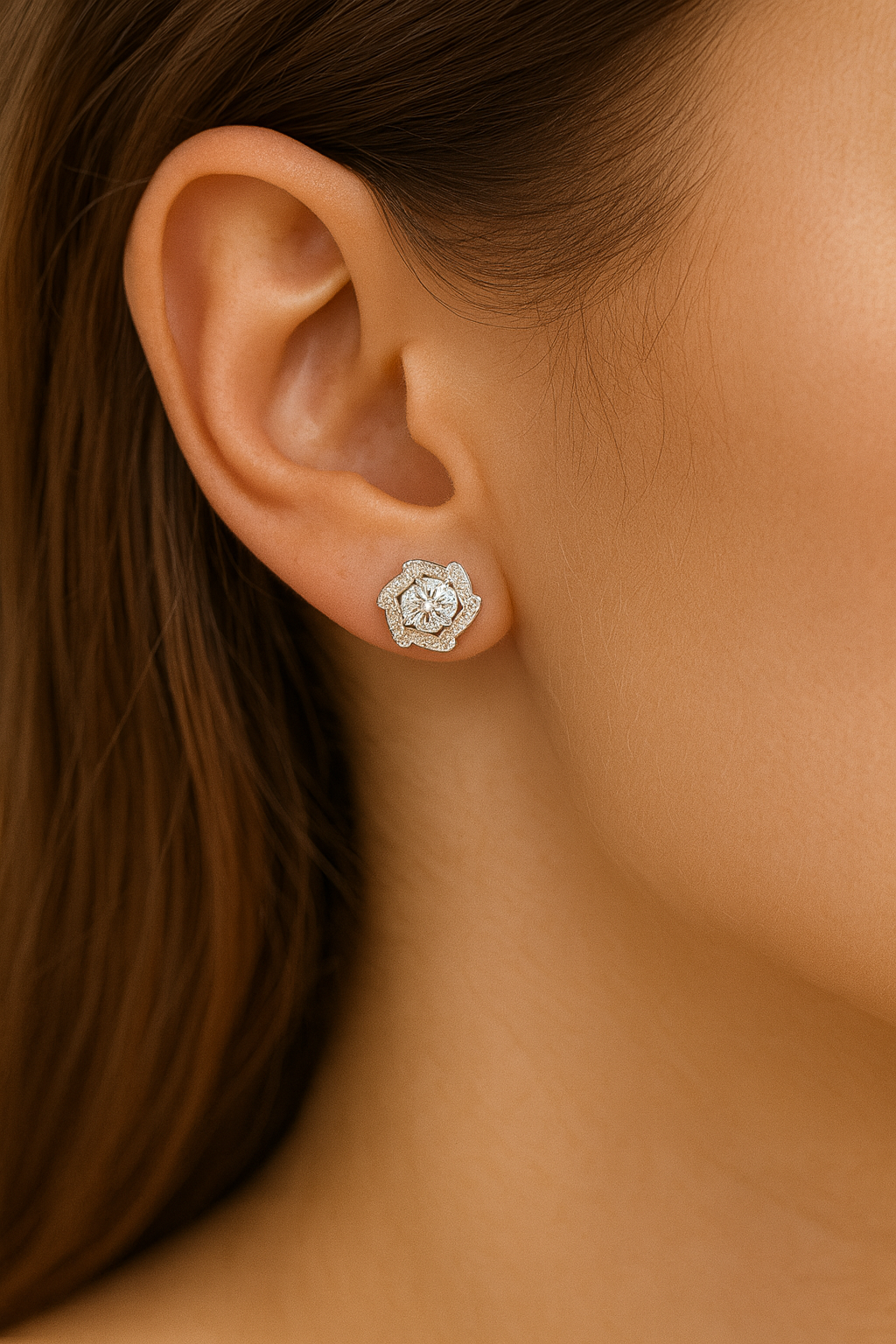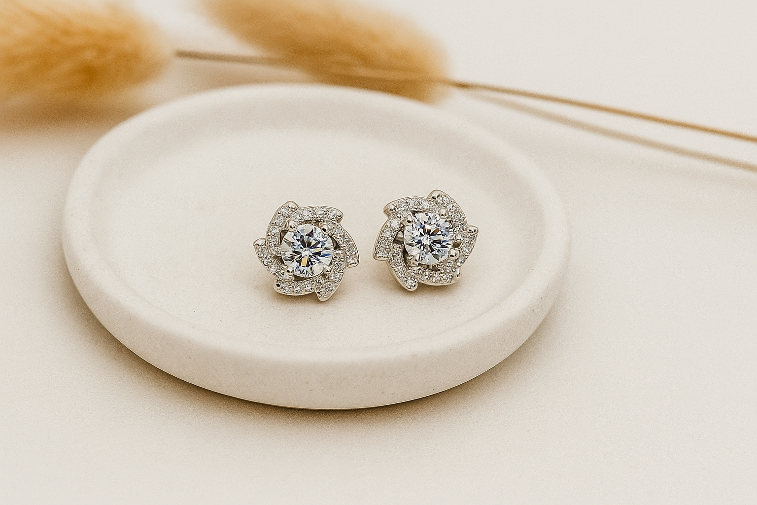 The white rhodium plating offers a bright, luxurious finish that’s resistant to tarnish and ideal for sensitive skin. Whether you’re shopping for a birthday, anniversary, or bridal jewelry, these floral earrings are a timeless choice that complements any outfit.