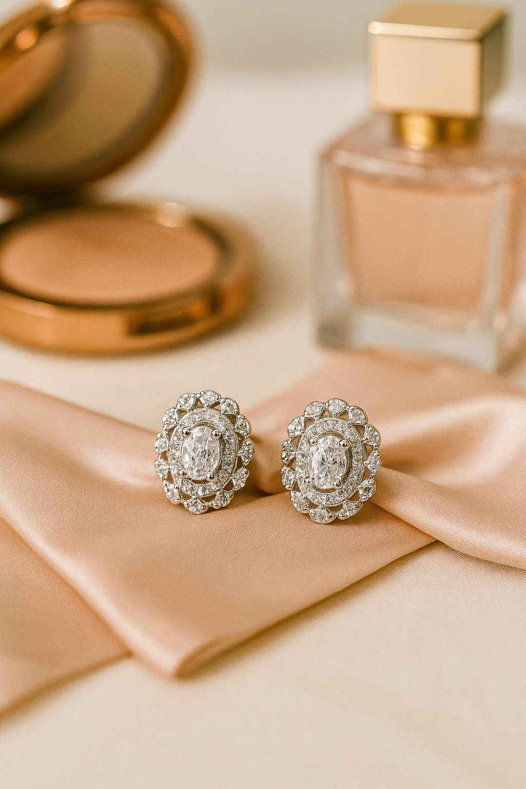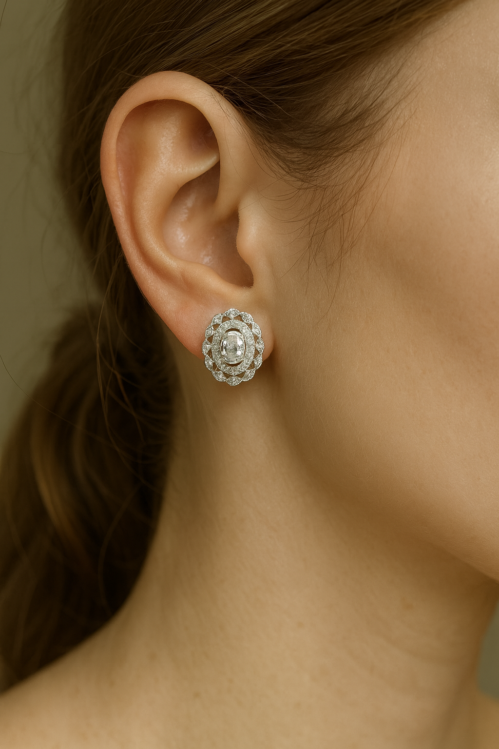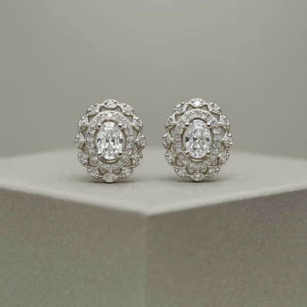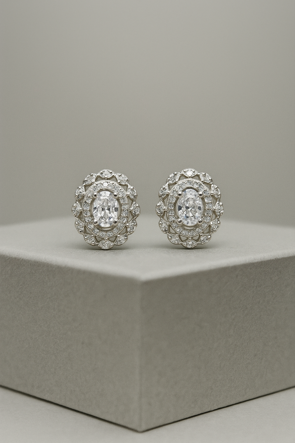 Add timeless elegance to your jewelry collection with these White Rhodium 925 Sterling Silver Stud Earrings, featuring a stunning vintage-inspired oval design and sparkling high-quality cubic zirconia stones. These dainty earrings are crafted with precision and plated in white rhodium for a luxurious, tarnish-resistant finish.