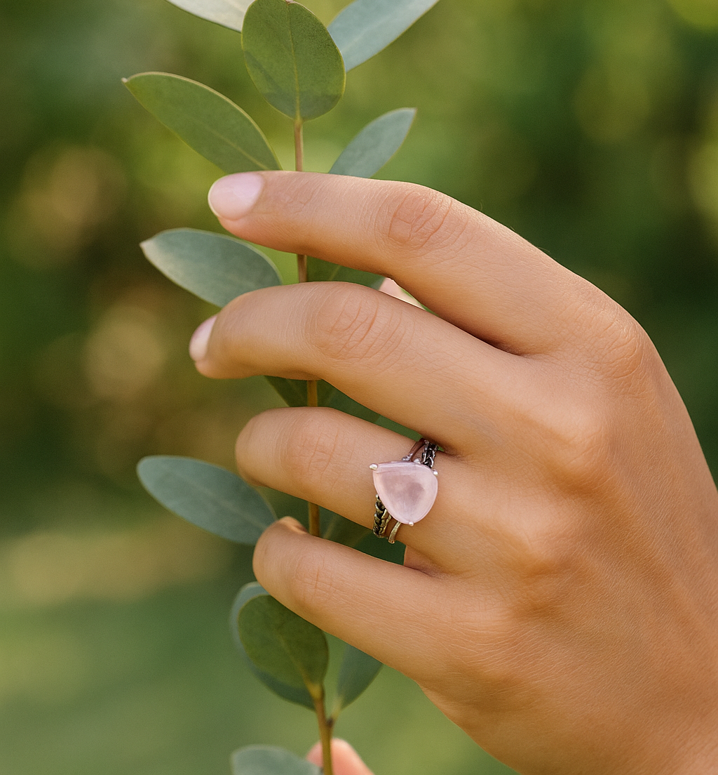 This elegant ring features a natural Chocolate Moonstone set in a high-quality 925 Sterling Silver band. Known for its deep, rich hues, the chocolate moonstone’s unique shimmer adds a touch of magic to any look. Rose Quartz Ring 925 Sterling Silver Jewelry